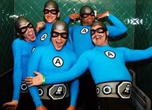 Here come The Aquabats! The first all-crime fighting all-surfing rock supergroup in history! Traveling the highways and by-ways of the land in their trusty super customized Winnebego tour vehicle, The Aquabats look to become a legitimate rock n’ roll sensation while doing good for all mankind. Meanwhile, as the powers of evil seek to upset the balance of happiness in the world, The Aquabats find themselves on a never-ending quest to right wrongs, destroy boredom and seek justice for all! Especially the kids!