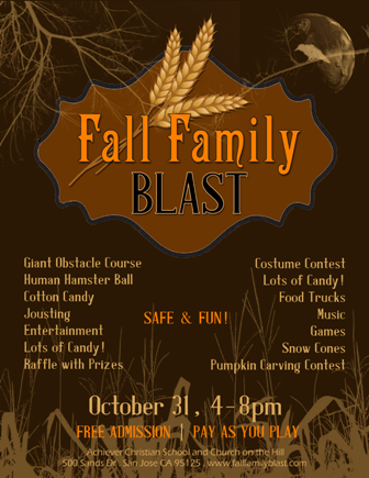 Fall Greetings!Achiever Christian School and Church on the Hill are the hosts for this annual safe event for kids on Halloween.