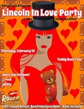 LINCOLN IN LOVE: The most honest person in America on a quest for the truth discovered that love is the closest intangible assest that mankind can ever reach. So to honor this Great Man's bday and to be in the Valentine's Spirit we are proud to present this fun soiree filled with serendipitous surprises!