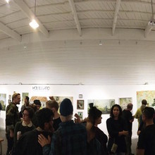 Avery Palmer's drawings and paintings carry the psychic weight of another century. The background colors range from a variety of nudes to deliquescing corpse grays. These arid landscapes are peopled with hybrid forms of humanity-- animals, insects, dolls-- all sharing our bodies. In addition to this palette of washed-out anomie, the remote facial expressions express a recessive dream world. Palmer's surrealism fleshes out the unconscious, where bent thoughts thrive. Here every sleeping mind looks directly into the eyes of death. The canvases are less populated than those of Hieronymus Bosch, but they both share the sense that with tomorrow comes some fresh hell.