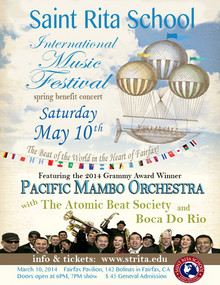 On May 10th we invite all our friends from the San Francisco Bay Area and beyond to the Fairfax Pavilion for THE SAINT RITA SCHOOL INTERNATIONAL MUSIC FESTIVAL to celebrate Saint Rita School's new journey, the implementation of the International Baccalaureate Primary Years Program.This year's Spring Benefit Concert features PACIFIC MAMBO ORCHESTRA, the 2014 Grammy Winner for Best Latin Tropical Album, a dynamic 19-piece Big Band that honors the sounds of the great Latin Big Bands of the 1940s through 1960s.