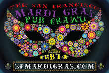 Join us for the annual San Francisco Mardi Gras Pub Crawl on Saturday, February 14 from 4PM to 8PM!If you can't make the trek to New Orleans to throw back some Hurricanes on Bourbon Street for the the official Mardi Gras festivities, The CrawlSF Team has put together a crazy party complete with beads, masks and plenty of drinks. The Crawl takes place in Russian Hill and will feature $3 Beers, $3 Drinks and $3 shots plus free beads, masks and other Mardi Gras goodies.