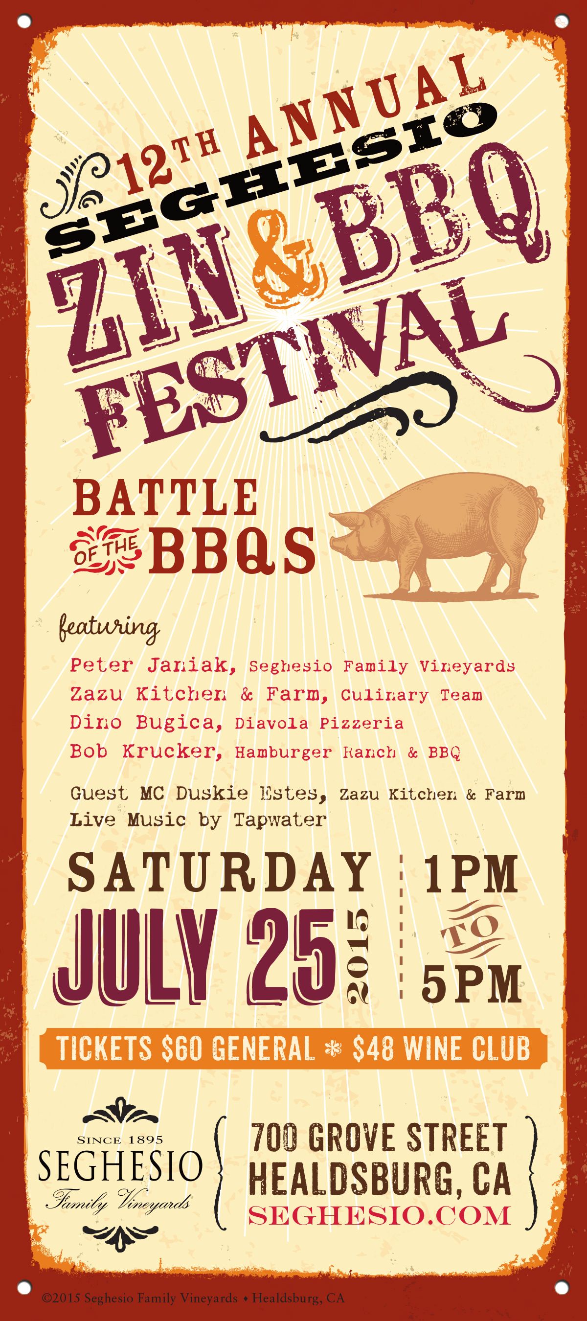 What: Seghesio Family Vineyards invites guests to attend the 12th annual Zin & BBQ Festival, an afternoon of Zinfandel tasting and gourmet eats, taking place Saturday, July 25. Located in the heart of Healdsburg, Seghesio Family Vineyards provides a premier location for an afternoon of delicious BBQ, good company, fun in the sun, and Zinfandel.